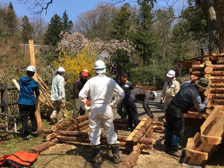 まずは、まさに桃源郷に隣接する山で伐採した木。