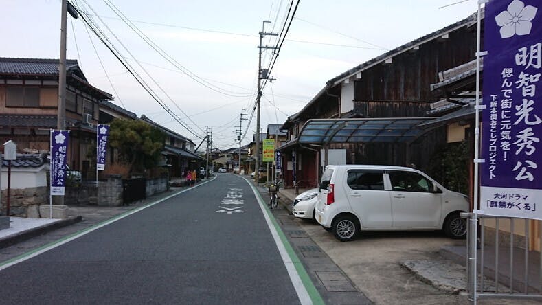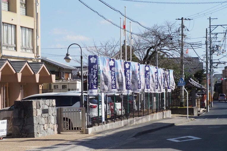 明智光秀ゆかりの地だけでなく、公共施設並び民有地にものぼり旗を掲揚しています。