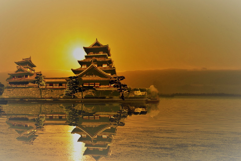 (坂本城のイメージ画など)