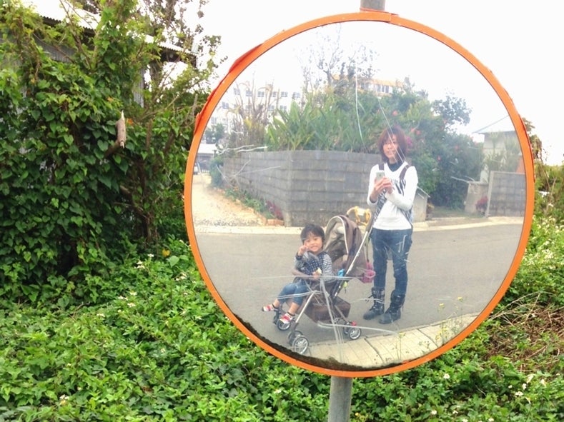 ↑お散歩の途中カーブミラーに映った姿をみつけ記念撮影。笑