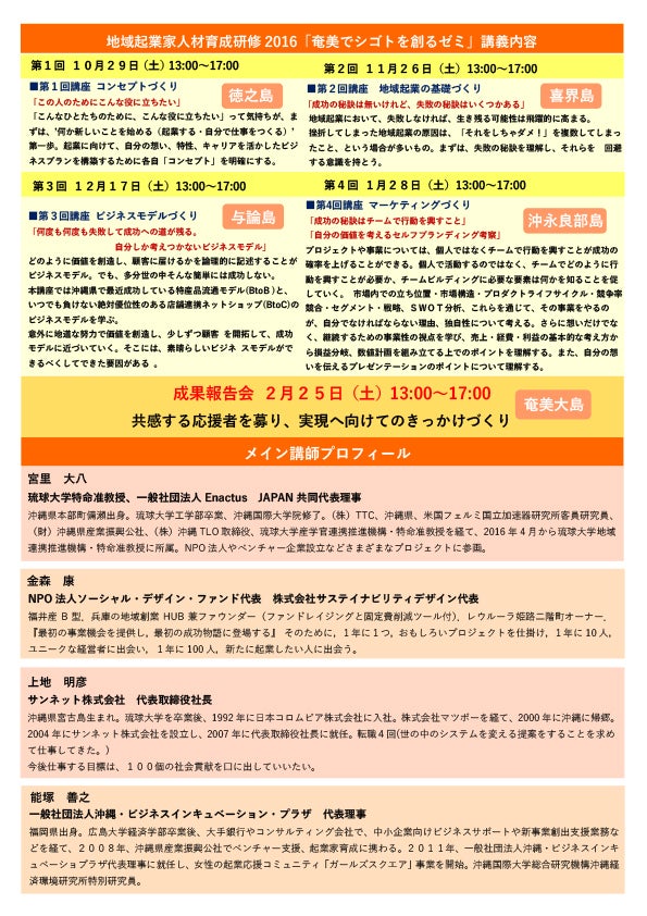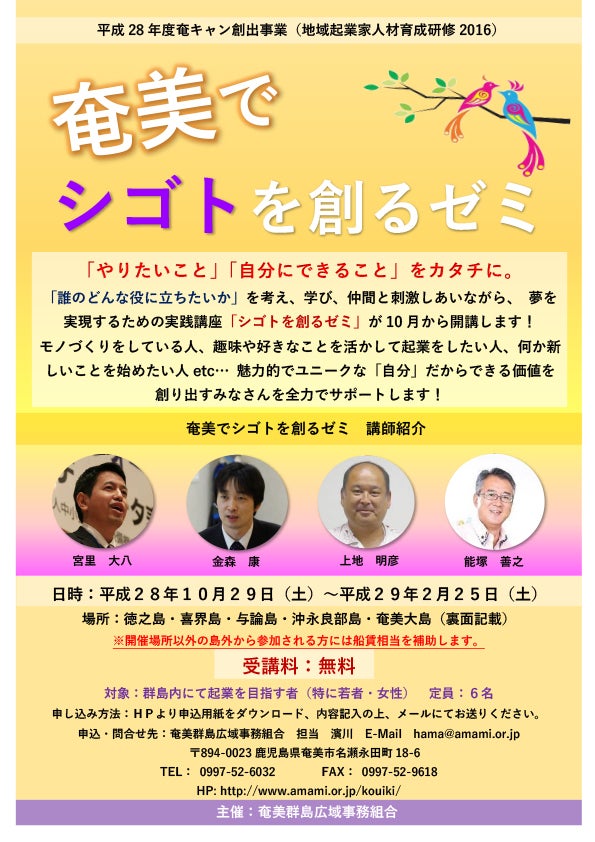 そして2016年秋から「奄美でシゴトを創るゼミ」が奄美群島でスタート。