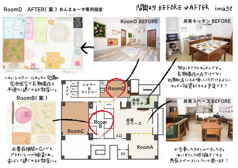 こんにちは。内野です! 新聞に掲載されてから、情報を知った島の方にお声をかけていただいたり ご支援をいただいくようになりました! 「応援してます!」というお言葉、本当にありがたいです。 私たちの活動は島の人が求めてるものだったんだ!と改めて感じています。 先日も那覇に行ったのですが、たまたま友人が那覇にいたので一緒に施設周辺を歩きながら 「ここが施設になるんだよ~」と友人に言うと 「立地、最高じゃん!」とお褒めの言葉をいただきました(笑) 「でしょ~!」と私が自信満々に言うくらい島の人がよく出没する場所から近いんですよね。 さて、そんな立地最高の場所にある施設の間取りとイメージを公開しますね イメージ画像は今のところの案です。 与論島の方専用以外のお部屋は 女性専用ゲストハウス、または女性がいる家族用のゲストハウスになる予定です! 通常料金にはなりますが、妊婦さんで無くても泊まれることができます! 4月に入り、いよいよ本格的に準備を進めています! 来週にはメンバー数人で家具家電の調達のため那覇入り予定です! 毎月一、二回も那覇に行ってるうちの娘。 だいぶ旅行慣れしてきています(笑) では。 よろん出産子育て応援隊あんまぁ~ず 【HP】http://yoronanmas.wixsite.com/mama 【Blog】http://yoron-anmas.hatenablog.jp/ 【Facebook】https://www.facebook.com/yoron.anmas/ 【Twitter】https://twitter.com/yoron_anmas