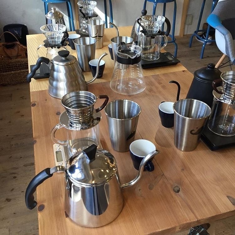 今回はドリッピコーヒーのワークショップでした! 4名のお客様をお迎えしての開催。 この日は、少人数で時間に余裕ができる!のをいい事に、いつも以上の熱量でしゃべってしまいました。。来て頂いた方にはなんとなく申し訳ないくらいに。。笑 ただ、より深いコーヒーの話や、質疑応答の時間を取ることができ、お客様からのありがたい声もたくさんちょうだいしました! 今回ご参加いただいた前田様より感想をいただいてます。 こんな凄い熱量で感想をよせてもらってほんとに幸せです! ここからは前田様より ーーーーーーーーーーーーーーーーーーーーーーーーーーーーーーーーーーーーーーーー うちでも美味しい珈琲が飲みたいなぁなんて思ってる矢先、Instagramで恋史郎コーヒーさんのワークショップの記事を見つけました。 「どんなコーヒーでも美味しく淹れられるように…」 これは行かないと!と、私の母、夫の3人で今回のワークショップに参加させてもらいました。 正直な感想、想像をはるかに超えるものでした! コーヒーってこうなの?! と、目からウロコのいろんな発見が多かったからです。 まず、私のコーヒー事情をお話ししますと、今まで家でコーヒーを飲むのには、本やインターネット、お店の人の見よう見まねで淹れていました。 コーヒー豆だって、普通に巷で飲まれる深くてどちらかというと苦い?ものが好きで。とにかく、なんとなーくこうかな?という感じでコーヒーを飲んでいたわけです。でも今回のワークショップに参加して、コーヒーの概念がまるっきし変わりました。 まずは、豆。 恋史郎コーヒーさんの取り扱っている豆は、全て生産履歴がわかっているコーヒーの最高峰「スペシャルティコーヒー」。 その中でも、豆の味や風味を最も感じられる焙煎の度合いである「浅煎り」の豆から、豆の個性が損なわれないしっかりとした豆を丁寧に焙煎された「中煎り」~「中深煎り」の豆があるそうです。 実際に参加者それぞれで、ケニア(浅煎り)・エルサルバドル(中浅煎り)をハンドドリップして飲み比べてみました。 まぁ、味の違うこと! 同じ豆の量、同じ温度、タイミングで一斉に淹れても、ドリッパーの特性(形)、ドリップポットで滴下する時間や量で、味わいが変わったのが、本当に衝撃でした。 そして、時間が経ち、温度が下がると浅煎りの豆って、また変身するんです。 すっぱい中にも、フルーティでまろやかで角がない。時間が経つとさらに甘くてすっきりした味わいに変わる。 今まで飲んできたコーヒー(中深煎り)も飲み慣れているので、好きなのに変わりはないですが、今回のワークショップで少しだけコーヒーの本質が知れたような気がして、ワクワクして、もっともっと美味しいコーヒーが飲みたいなぁと思った日だったのでした。 そんな恋史郎コーヒーさんでは、もっと美味しいコーヒーを飲んでいただきたい!ということで、クラウドファンディング真っ最中。 美味しいコーヒーを飲むためには、豆の質・豆にあった淹れ方はもちろん、大きなポイントは「挽き方」にあるそう。 素人の私でも、そこには激しく同感していて(まさに家庭用の電動ミルの購入のため模索中)、いくら質の良い豆だったとしても、豆の粒の大きさがバラバラだと、正直美味しくない。 豆の挽き方が一定に揃うことで、安定した美味しいコーヒーが飲めるって…ほんとに魅力的だなと思います。 そしてなにより、オーナーさんのこのコーヒーに対する熱い熱い愛情が、皆さんに届いて欲しいなぁと思う今日この頃です。 宮崎で、世界最高のコーヒーが飲める日はそう遠くはないかなぁ。 心から応援しています。 ーーーーーーーーーーーーーーーーーーーーーーーーーーーーーーーーーーーーーーーー 前田様、ほんとにありがとうございます!!もう感動で泣きそうです!! 皆さんもこんなコーヒー感動体験、一緒にしてみませんか?