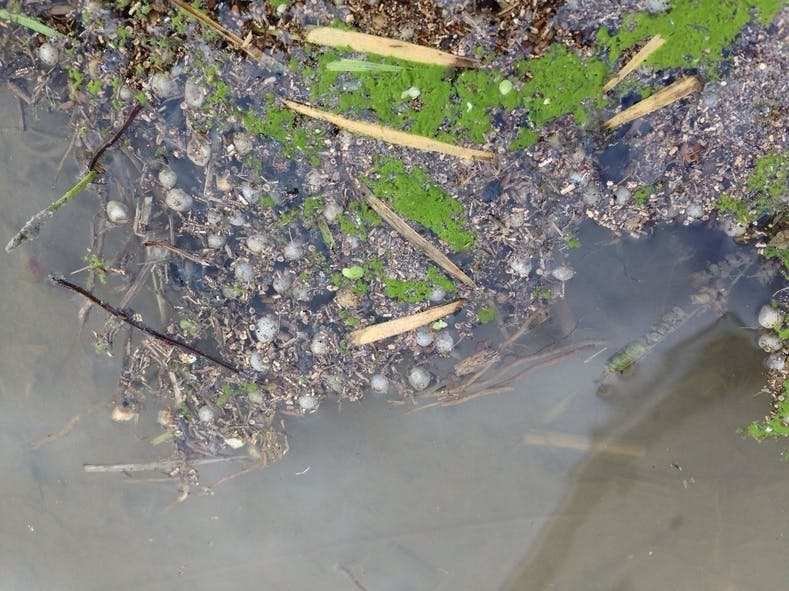 二枚目以降の写真は昨年、近所の水田で撮影したものですが、長年使用してきた徐放性肥料カプセルが、大量に水田の中にもたまっていて、これが田起こしされて表面に出てきて、水を張ったところに浮いている様子です。これらが水を抜いたり、雨でオーバーフローした時に川に出て、海に流出します。