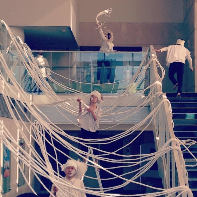 昨年は、地元アーティストである彫刻家×俳優×ダンサーたちと創作を行い、サンポートホール高松の劇場ロビーをインスタレーション/パフォーマンスで変貌させてゆく作品を発表。「こんな場所で?こんな面白い試みが行われるなんて思ってもみなかった!」「もっとこういう新しいパフォーマンスを観てみたい!」と観客や関わってくれたスタッフ・メンバーからは、今後を期待する声を頂きました。