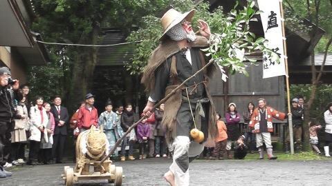 香取神社の女神と天宮神社の男神の恋物語で、祭りでは香取神社の氏子が馬を連れて天宮神社へと向かいます。香取神社の境内では「田植え狂言」が奉納され、南九州特有の一連の流れは必見です。