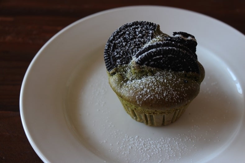 食べ茶を混ぜて焼き上げています。トップにはオレオを・・・