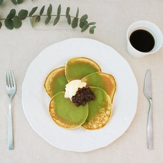 パンケーキの甘味と食べ茶のほろ苦さがマッチしますよ。