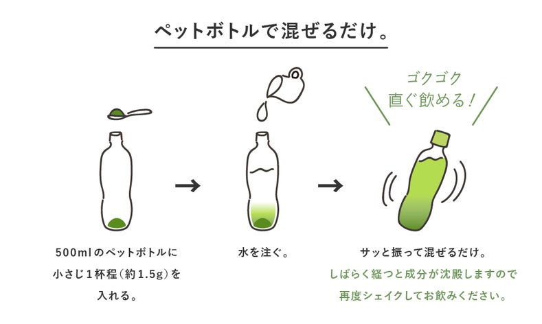 500mlのペットボトルに小さじ1杯「まるごと食べ茶」を入れて・・・