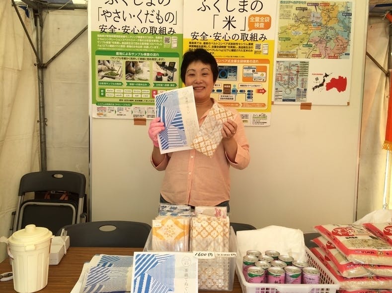 さらに、年数回、東北関連のイベントで、福島県いわき市の「いわきおてんとSUN企業組合」が制作しているオーガニックコットンを使用した手ぬぐいやタオルを紹介・販売しました。
