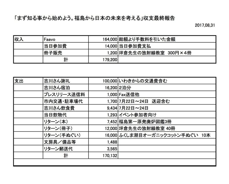 2017/08/31 12:49みなさま リターンの送付も終わり、収支が出ましたのでご報告申し上げます。 結果として、9千円ほどの余剰となりました。こちらの金額については手弁当で運営して来たメンバーと相談して分けさせて頂きたいと思います。 ありがとうございましたm(_ _)m 矢動丸 純子 もっと見るリターン品お渡し/郵送終了しました