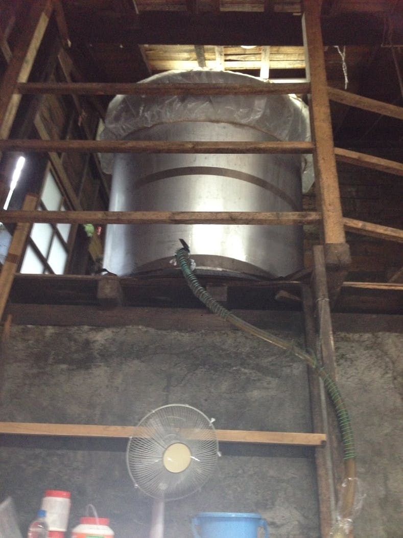 瓶への詰め口も手動でした。2階にタンクを置き、下に流してました。知恵がうかがえました!ホースに詰め口の機械をつないで最終ろ過しながら瓶につめていくそうです。