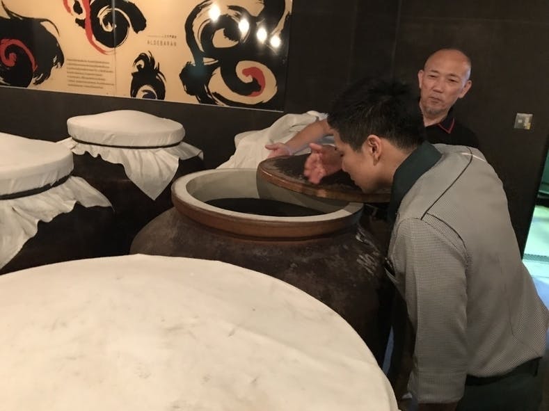 「焼酎ブーム」がきた約10年前、関東など都市圏を中心に焼酎出荷が強かった酒造王手門の歴史があり、都市部の高級旅館やホテルのレストランや料亭に食中酒として選ばれている実績はさすがで、杜氏さんの目に自信が伺えました。