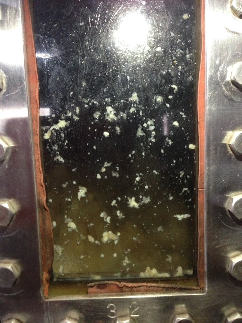 二次仕込みで、もろみからアルコールが生まれます。写真の窓内部を見て頂ければ分かりますが、このもろみを沸騰させることでアルコール成分を抽出します。