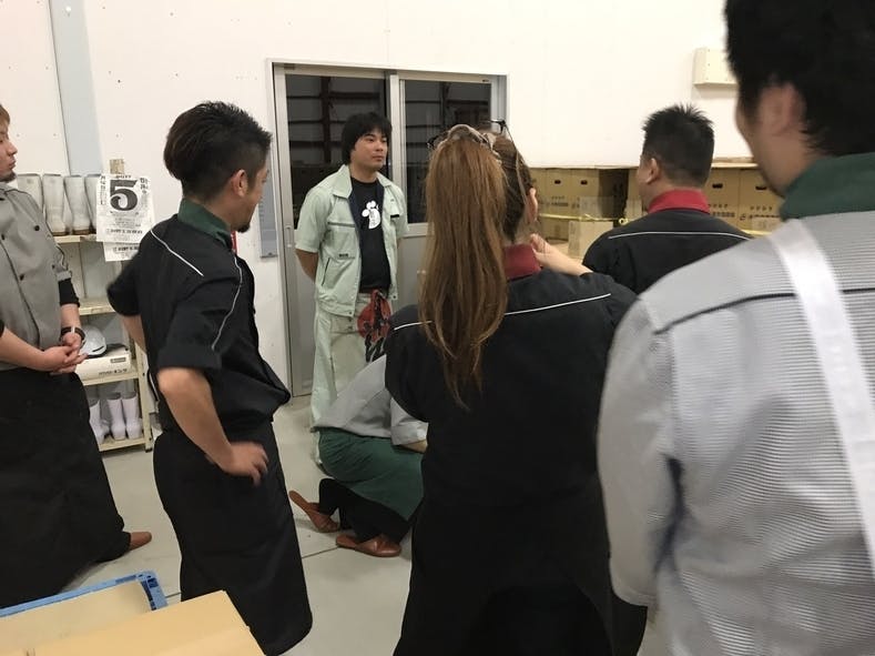 話をしていただいた落合さんと和気あいあいと、工程について質問も交えながら工場を見せていただきました。
