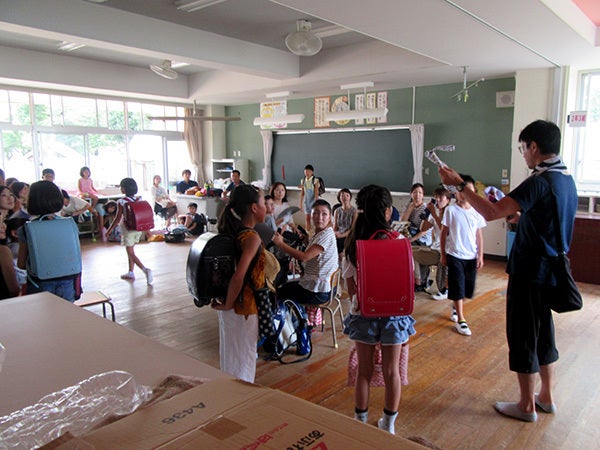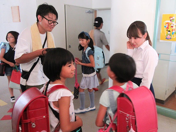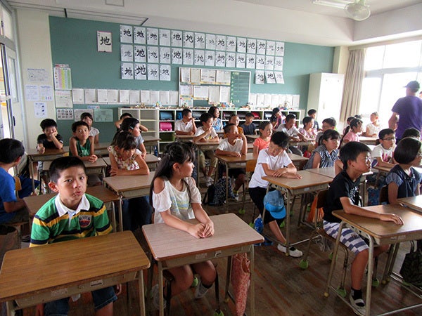 撮影最終日となる7月31日月曜日の午前中に、地元の小学生エキストラの子どもたちが、ロケ地となる小学校に続々と集まってきました。小学生エキストラ募集224名から抽選で選ばれた40名です。