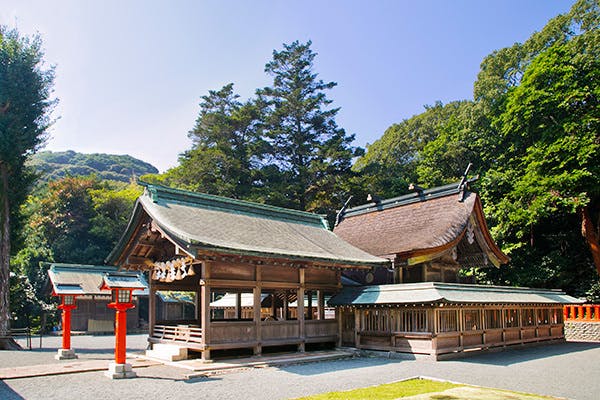 沖ノ島全体と三つの岩礁からなる宗像大社沖津宮(むなかたたいしゃおきつみや)は、宗像大社の三つの宮の一つで、田心姫神(たごりひめのかみ)を祀っています。国史跡「宗像神社境内」の一部であり、天然記念物「沖の島原始林」に指定されています。また、特別鳥獣保護区および自然環境保全地域の特別地区にも指定され、保護されています。