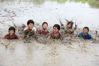 最後には子供たち田んぼに飛び込んで泥んこになったり