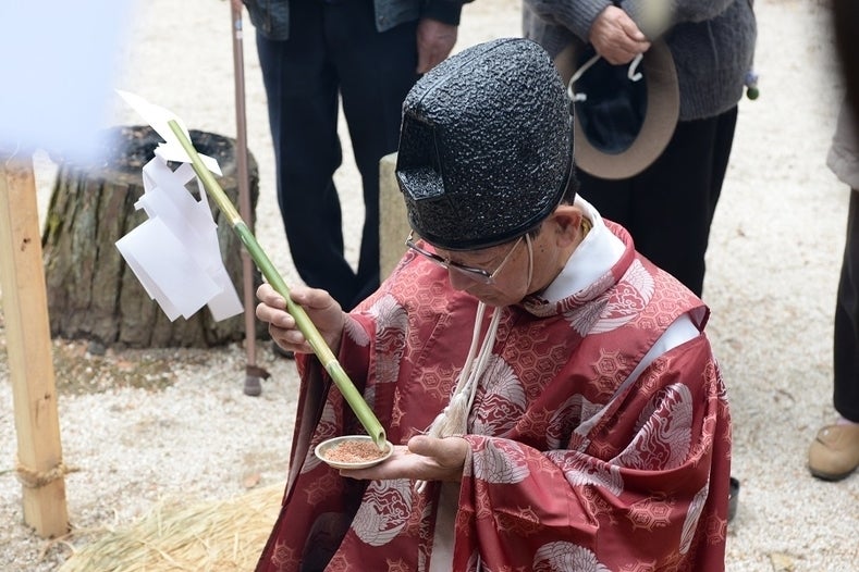 ▼国司神社で神主が神事をしている様子