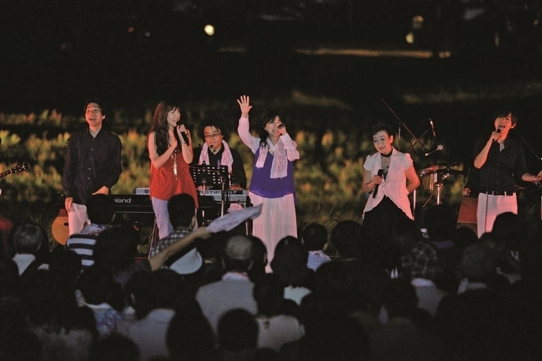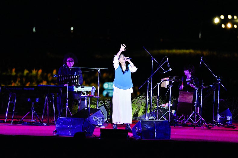 赤米の赤い田んぼを背景に相川七瀬さん、加藤登紀子さん、岡本真夜さん他アーティストの方々がヒット曲やPower To The Peopleなどを歌い、とても盛り上がり会場が一体化したステージでとなりました。