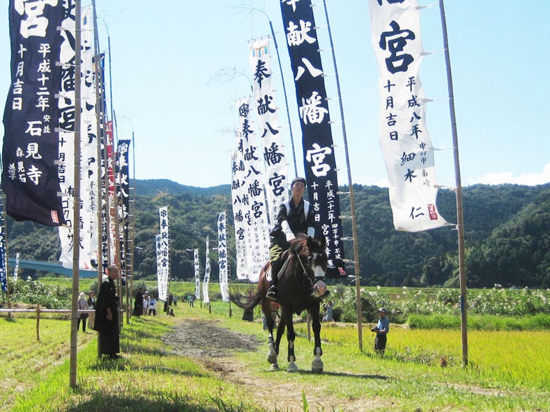2017/08/15 15:23皆様こんにちは山下です。 このプロジェクトの締切もついに明日までとなりました。 今日のレポートは、本番の神事・行事の主な予定をお知らせいたします。 9月16日(土) 午前11時 結納の儀 (旧)宮司宅 潮ごり 四万十川(角崎地区) 午後 3時 公式祭 不破八幡宮 午後 5時 宵宮祭 不破八幡宮/一宮神社 9月17日(日) 午前 8時 神輿巡幸 午前11時 茄子取り(船戸上げ) 船着き場(角崎地区) 午前11時頃 御旅の祭典 須賀神社(百笑地区) 午後 1時 高屋の祭典 八幡宮前の川下の畑地 午後 2時頃 神輿合わせの儀式 八幡宮前 午後2時半頃 本祭典 八幡宮前 <奉納行事> 9月16日(土) いずれも境内で 午後 5時 奉納こども相撲 午後 6時 民謡舞踊奉納 午後 7時 奉納神楽(幡多神楽) 9月17日(日) いずれも八幡宮前で あげ馬など 写真は、昨年の上げ馬の様子です。とっても爽快です。ほかにも色々と儀式があり、奉納行事があり、夜店があり。。。その上今年はパワーアップして奉納よさこい踊りがあります。よさこいについては時間がまだ未定ですが、それでも十分に楽しめること間違いなしです!ぜひ、一度お越しください もっと見る