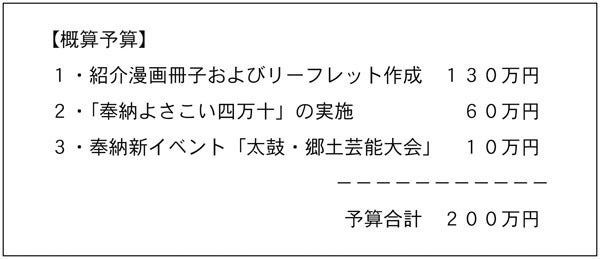お祭りを盛り上げていくために、若い人たちや観光客の方々に伝統ある祭りへの理解を深めてもらう事が必要だと考え、漫画で構成する『紹介本』と『リーフレット』を制作し、四万十市内の中・高校生および観光客等に無料でプレゼントします。