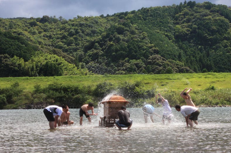 不破八幡宮大祭では、対岸の一宮神社に祀られている女神三柱からくじ引きで一柱を選び結婚式をする『神様の結婚式』が行われています。これは、全国でも珍しい神事で四万十川の奇祭といわれています。
