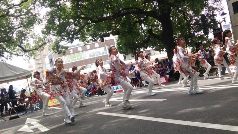 普段は耳にしない民謡を聞きながら、普段は歩けない橘通りを練り歩き、みんなで息を合わせて踊る一体感と高揚感は格別です!