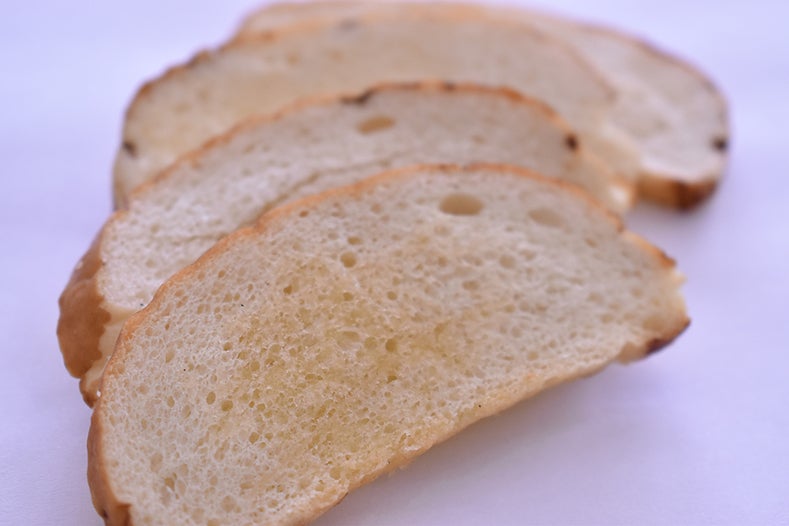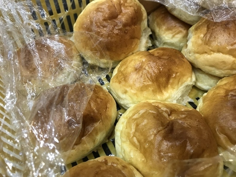 現在は「カステラパン」として出しているパンが近いのですが、違いはクリームのないプレーンなパンであること、そして表面をサクサク食感のクッキー生地が覆っていることです。「割れて袋に残ったクッキー生地をサクサクお菓子のように食べてたね」と、卒業生のお客様と幾度も盛り上がったことがあります。