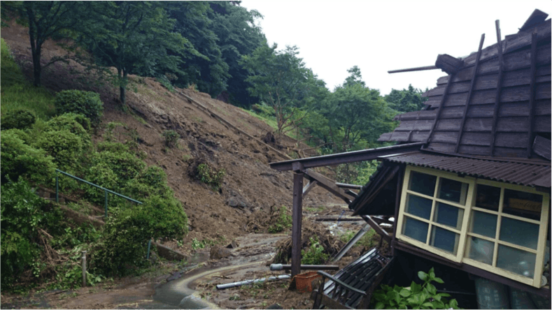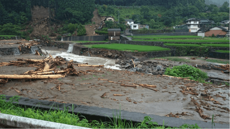 ▲その東峰村が、7月5日に発生した大水害で、壊滅的な打撃を受けてしまいました。のどかな田園風景が広がる宝珠山地区では、山は崩れ、田んぼは埋まり、家は押し流されてしまいました。