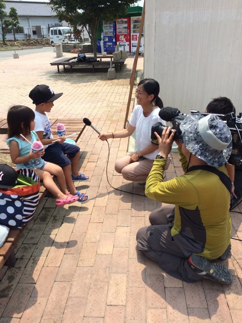 初日ということでマスコミも。ウチの子、声ちっちゃ!きっと御蔵入りです(笑) ちなみにおやつのかき氷は東峰村の鯉のぼりプールから来た方が販売されていました。