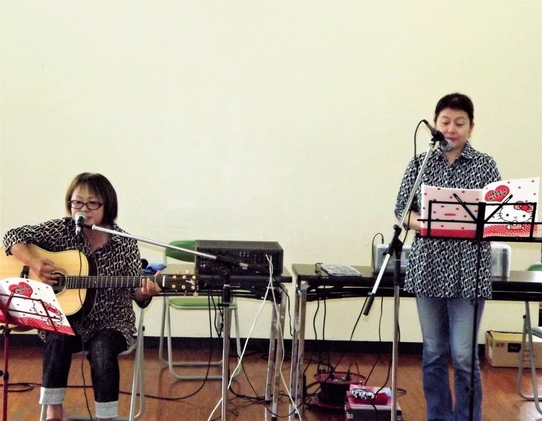 ギター&ヴォーカルは出水則子さん、オカリナ演奏は田野みちよさんです