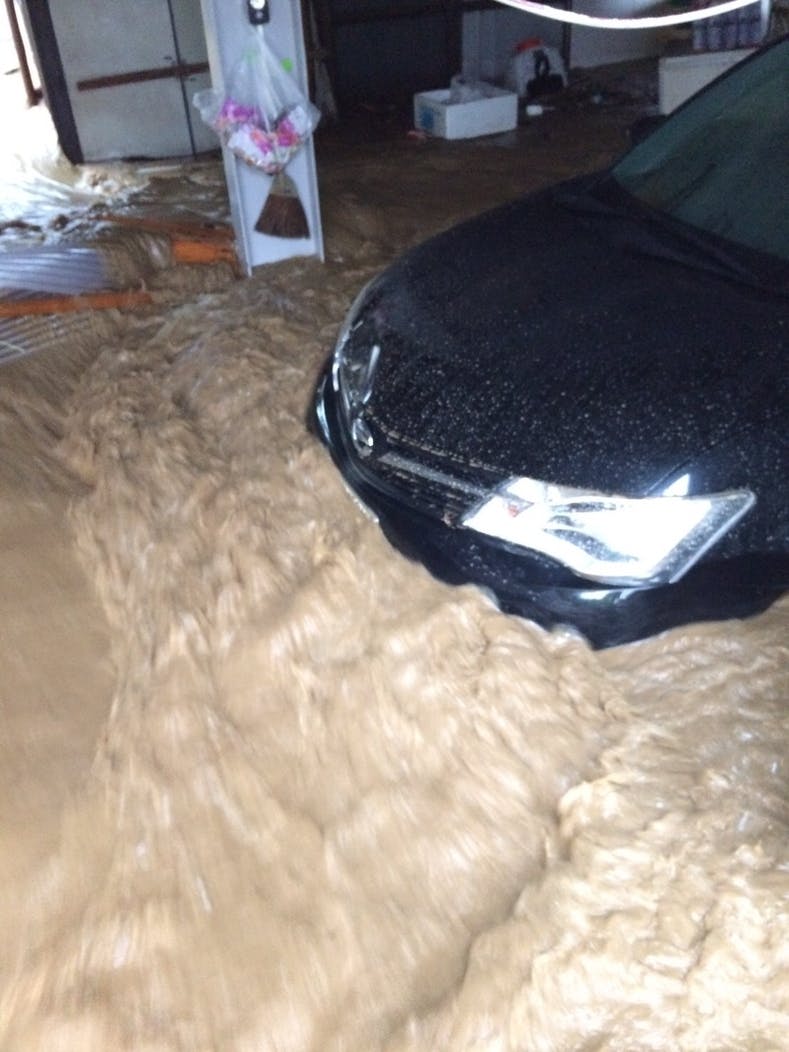 陥没してしまった道路や大雨で浸水した家、流木や土砂がそこらじゅうに流れ込んでいました。