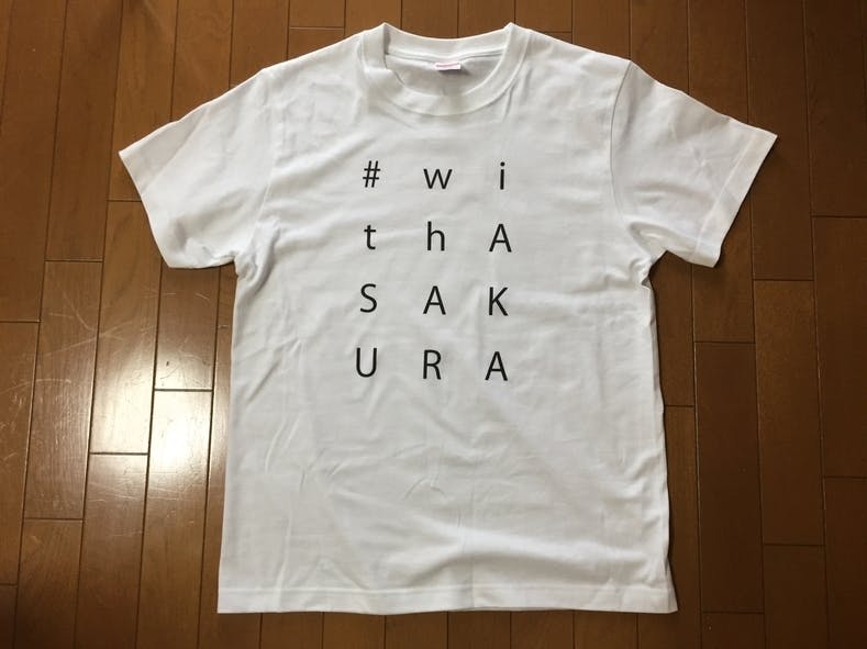 デザインは朝倉災害支援チームjimotocolorの合言葉である#withASAKURAの文字を施したTシャツです。