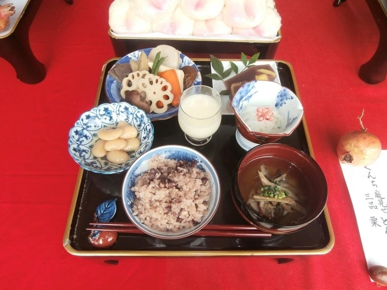 写真のうち、どじょう汁と小豆御飯を無料(人数制限あり)で提供します!