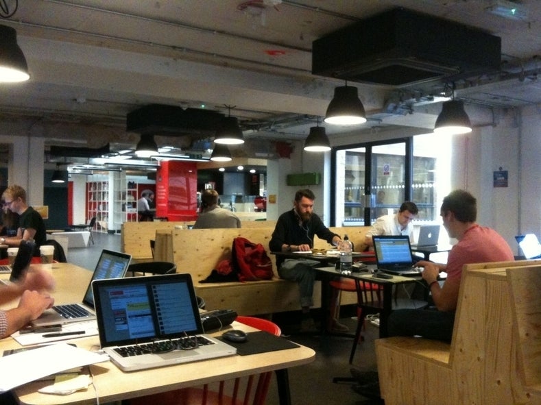 カフェのような気軽でおしゃれな場所に、自分のPCを持ち込み、自分の仕事をします。行き詰まったときは、同じ空間にいる他のプロの方に相談をしたり、情報を共有したり、仕事をお願いしたりすることもできます。