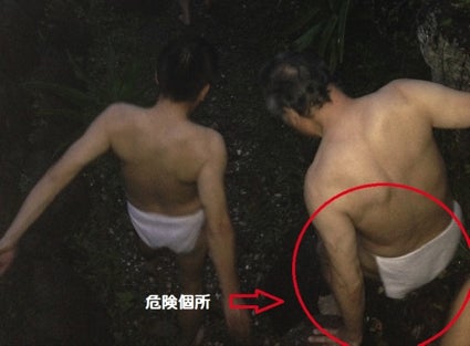 みそぎ場に向かう降り口には2m程の危険個所があり、今年は負傷者が出てしまいました。慣れない方は、非常に危険な場所です。