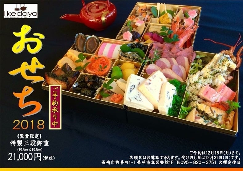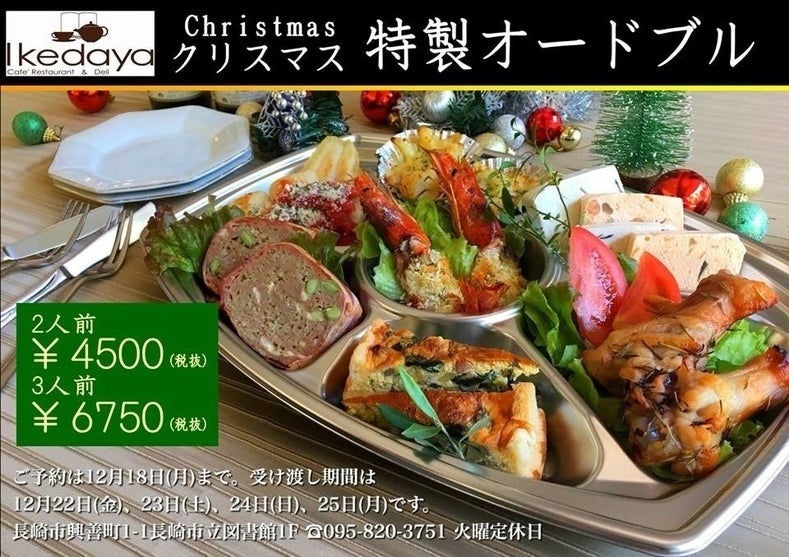 現在は毎年大好評のクリスマス特製オードブル&豪華三段御重おせちの予約が始まっています!ご予約は12/18(月)まで!