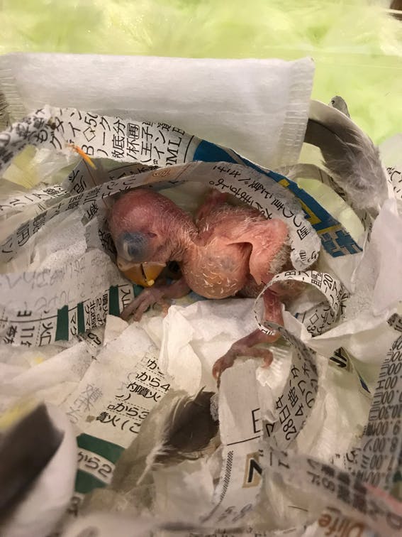 生後数週間の羽も生えていない小さな雛を