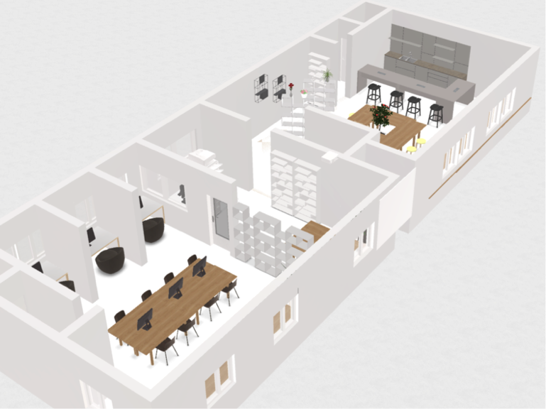 着工中であるコワーキングスペースの内装は以下のようになっております。