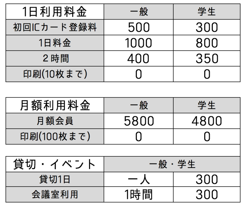 極力皆様が手ぶらで来れて快適作業ができるような環境を目指します。