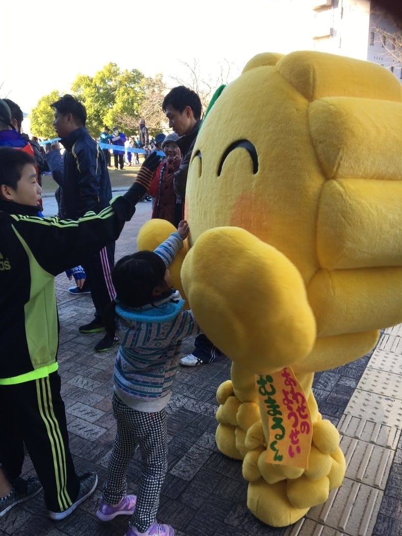 駅伝に参加される方を含め、多くの方々に触れいただいたり、写真を撮っていただいたりしました。ひむまるくんと初めて会った方に「幸せの妖精なんですよ。やさしくタッチしたり、写真を一緒に撮ったりすると幸せになれると言われているんです!」とお伝えすると、喜んで下さいました。