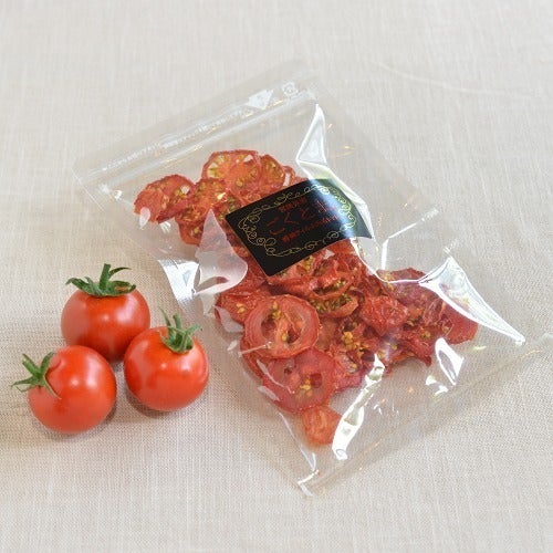 最大の味と栄養価を引き出す農法で作られた「ごくとま」は、パウダーなどの加工品も人気をいただいています。その中でも特に人気なのが「ごくとまドライ」。無添加で、素材をそのままスライスして乾燥しただけのドライトマトです。