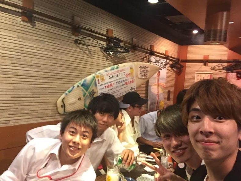 (写真一番右が私で、右から2番目が永住磨世、3番目が米吉大歩です。大好きな新宿の宮崎郷土料理居酒屋みやこんじょにて。)