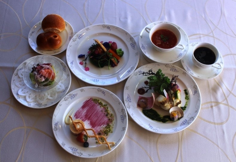 こだわりの食材と絵画的な彩りで見た目も味もフジを感じ、楽しんでもらえる最高のランチが出来上がっています。王野シェフと内藤パティシエを中心としたプロジェクトメンバーが知恵と工夫を凝らした自慢の「藤棚ペアーランチ」。その確かな味を心豊かなおもてなしとともにご堪能ください。
