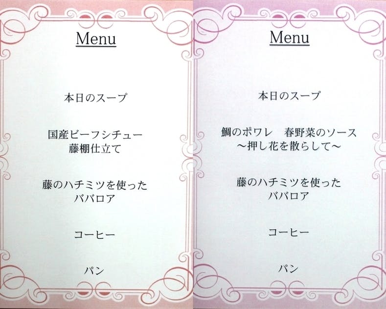 レストランの名前にもなっているフジをイメージして作られた「藤棚ペアーランチ」。