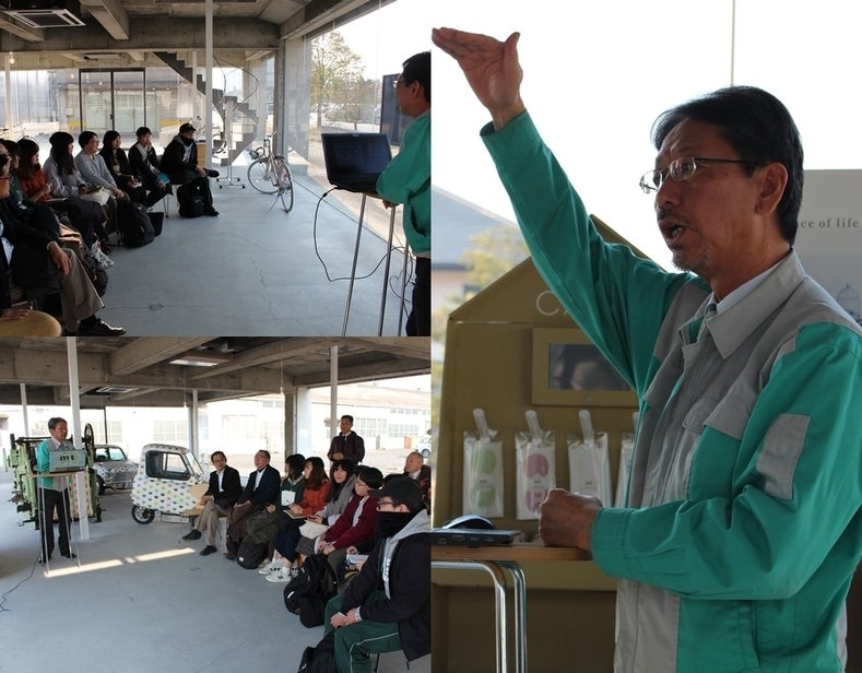 1月16日(木)に倉敷芸術科学大学の先生、学生とともにマスキングテープ「mt」を製造しているカモ井加工紙へ見学とデザイン打合せのため行ってきました。最初に「mt factory tour」でも使用されている全面ガラス張りの史料室へ行き、なんとカモ井加工紙の鴨井社長自ら「カモ井のものづくり~「mt」誕生秘話!~」についてお話いただきました。 「mt」誕生秘話!について説明する鴨井社長 元々は、車・建物の塗装で色を塗らない部分を隠すため、また、簡単にはがすことが可能なことから工業用製品としてマスキングテープが使用されていました。そこへ10年前、東京の女性3人から「好きな色、柄」のマスキングテープを作ってほしいという問い合わせがあったそうです。その3人は、国内のテープメーカー8社に相談しましたが、その中で、唯一、申し出を受け入れてくれたのがカモ井加工紙だけでした。それをきっかけとして、マスキングテープ「mt」が誕生しました。鴨井社長からは、「mt」誕生の背景の他にも販売戦略等について、冗談を交え学生とコミュニケーションをとりながら一時間ほどお話いただきました。 次に2階へ移動し、会社の歴史や過去に製作された2,000種類の「mt」、昔懐かしいポスター、看板など様々なものが展示されているスペースを見学しました。史料室2階展示スペース その後、限定マスキングテープを作成する上で、重要な仕様、注意点について担当者の高原さん(写真中央)と村松さんと打合せを行いました。デザイン打合せの様子 テープの幅、色、印刷の方法など細かい部分について入念に確認しました。お二人には丁寧にご対応いただいたおかげで、今後デザインを仕上げていく上で、非常に参考になったと思います。 今日のことを踏まえ、果たしてどのようなデザインが生まれてくるのか楽しみに待ちたいと思います。 当日ご対応いただいた鴨井社長、高原さん、村松さん、お忙しい中、貴重なお時間をいただき本当にありがとうございました。