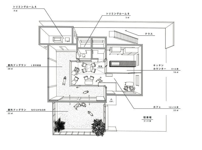 ・ドッグランはある。けれど、人がゆっくり過ごす場所がない