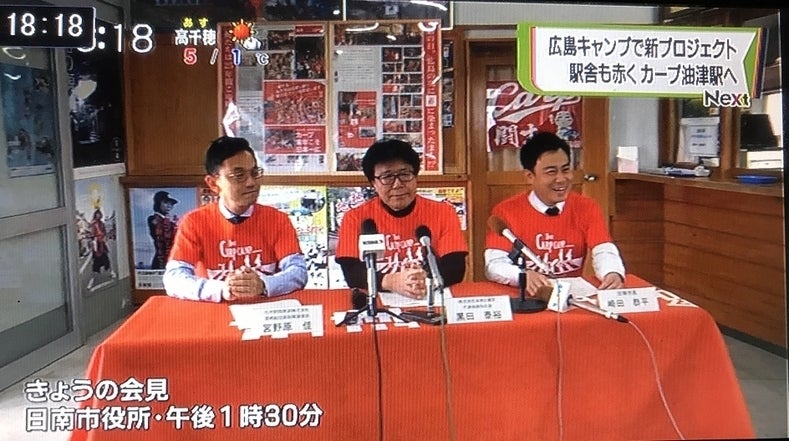 そして、企画を発表してからちょうど2ヶ月後の2月4日に広島東洋カープの緒方監督にもお越しいただき、カープ油津駅のお披露目セレモニーを無事に開催することができました!