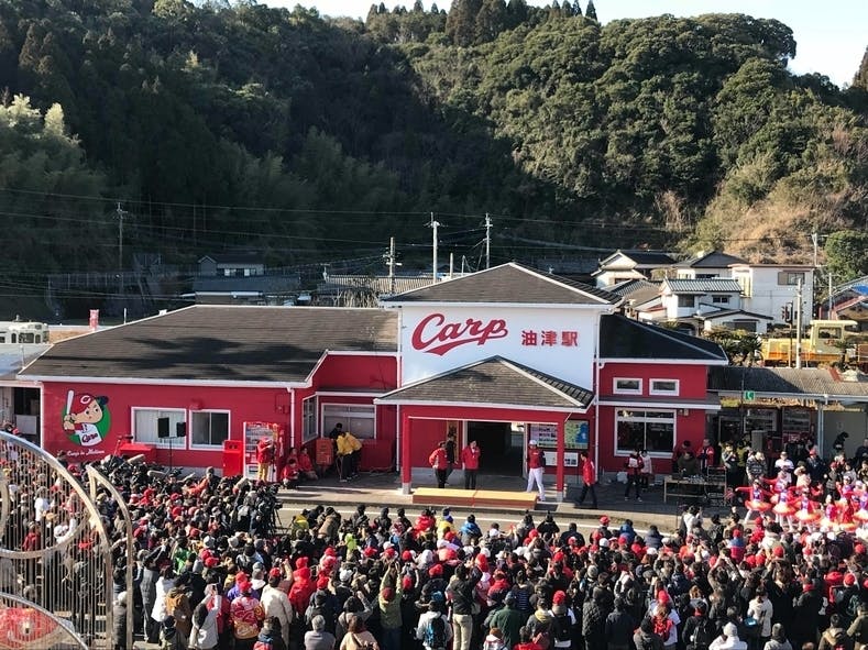 2年連続でリーグ優勝を果たした広島カープが56年間キャンプを張る宮崎県日南市。春と秋に練習をする天福球場の最寄り駅である油津駅にはキャンプシーズンになると多くのファンが訪れます。